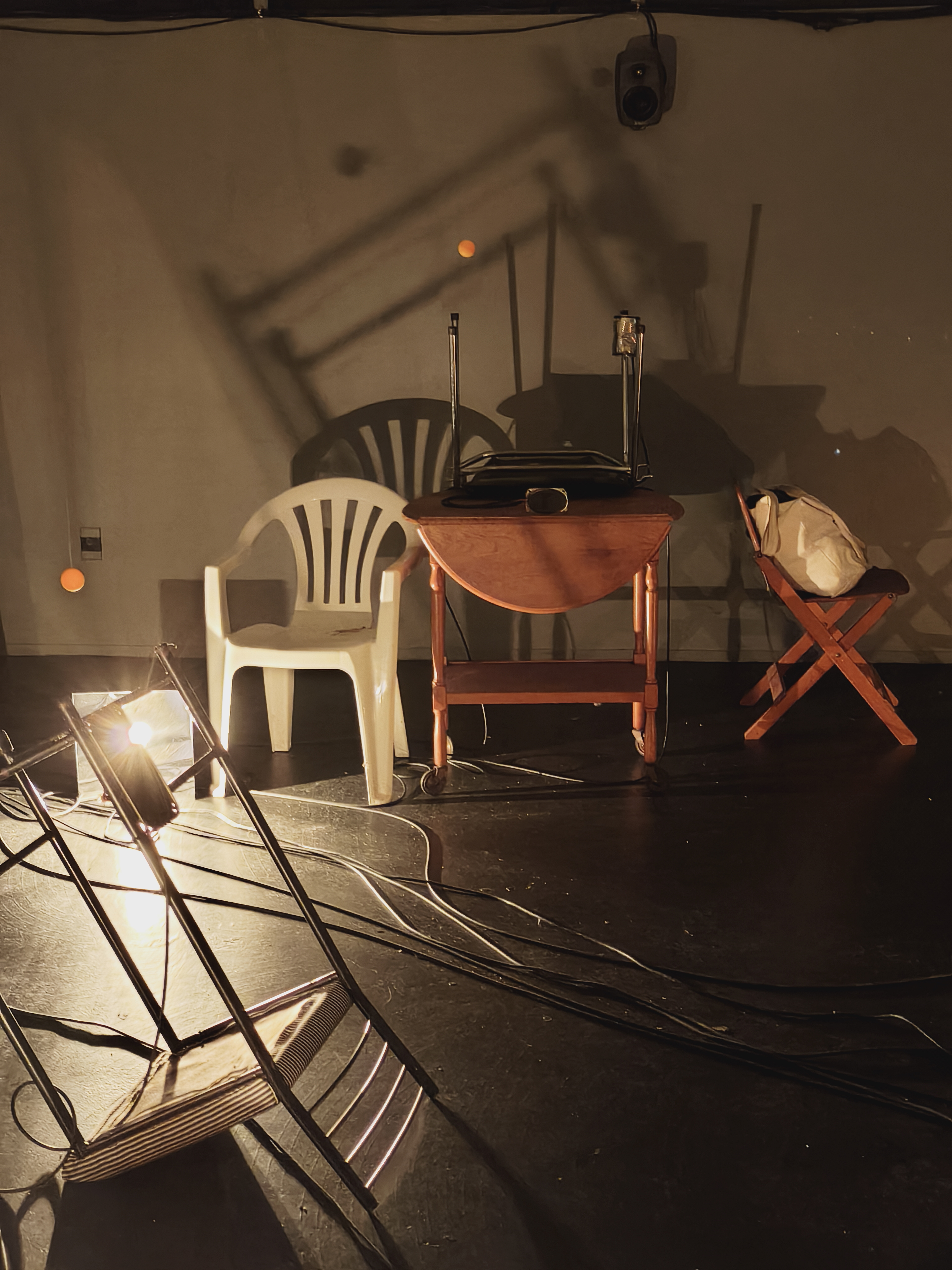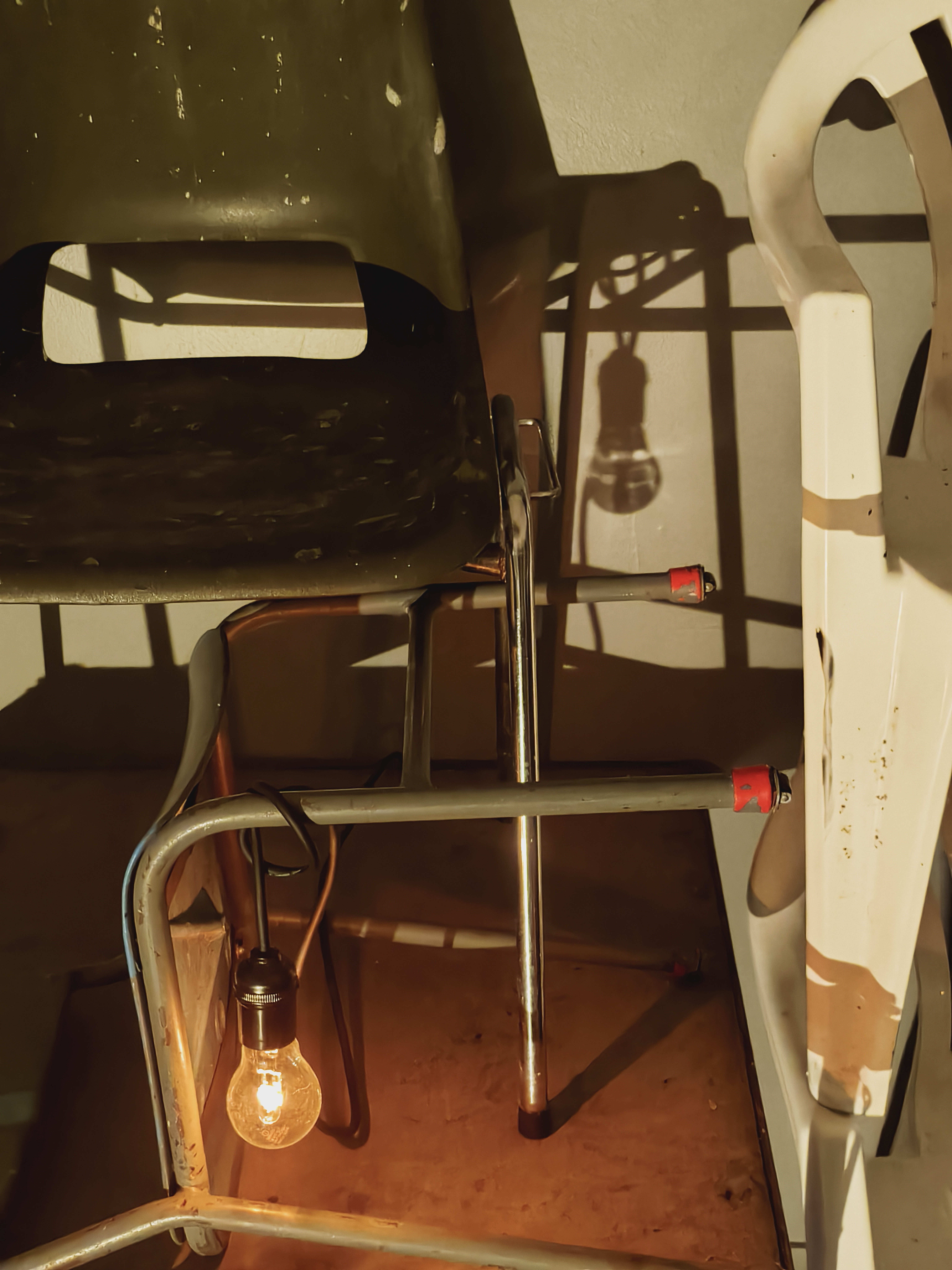 multi-channel audio, speakers, objects, light, shadows, room. La Chaufferie, Haute Ecole Des Arts du Rhin, Stransbourg, France.